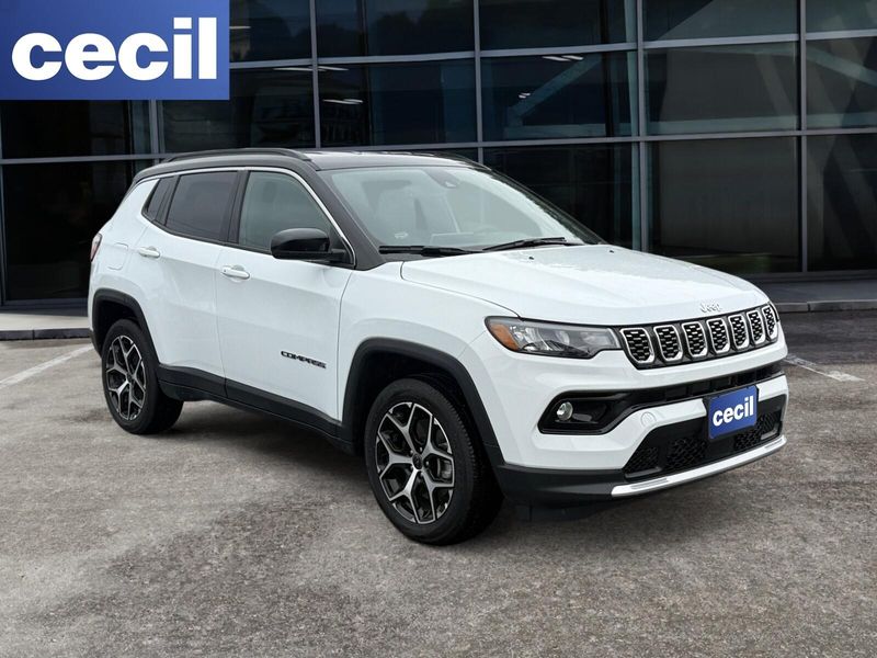 This 2026 Jeep Compass Limited is proudly offered by Cecil Atkission CDJR Burnet This Jeep includes: TU-TONE PAINT GROUP 225/55R18 BSW ALL SEASON TIRES Tires - Front Performance Tires - Rear Performance 8-SPEED AUTOMATIC 8F30 TRANSMISSION (STD) 8-Speed A/T Transmission w/Dual Shift Mode A/T BRIGHT WHITE CLEARCOAT 2.0L I4 DOHC DI TURBO ENGINE W/ESS (STD) 4 Cylinder Engine Gasoline Fuel Turbocharged *Note - For third party subscriptions or services, please contact the dealer for more information.* Want more room? Want more style? This Jeep Compass Limited is the vehicle for you. Stylish and fuel efficient. It's the perfect vehicle for keeping your fuel costs down and your driving enjoying up. Handle any terrain with ease thanks to this grippy 4WD. Whether you're on a slick pavement or exploring the back country, you'll be able to do it with confidence. Cecil Atkission Motors CDJR Chrysler Dodge Jeep Ram services all areas in the great state of Texas! Burnet, Bertram, Buchanan Dam, Tow, Bertram, Lampasas, Killeen, Liberty Hill, Leander, Round Rock, Lakeway, Llano, Kingsland, Sunrise Beach, Marble Falls, Horseshoe Bay, Granite Shoals, Cedar Park, George Town, Spicewood, Johnson City, Blanco, Bee Caves, Austin, San Antonio, Waco, Dallas, Fort Worth and more. We do offer free delivery within the state of Texas, ask us for more info!