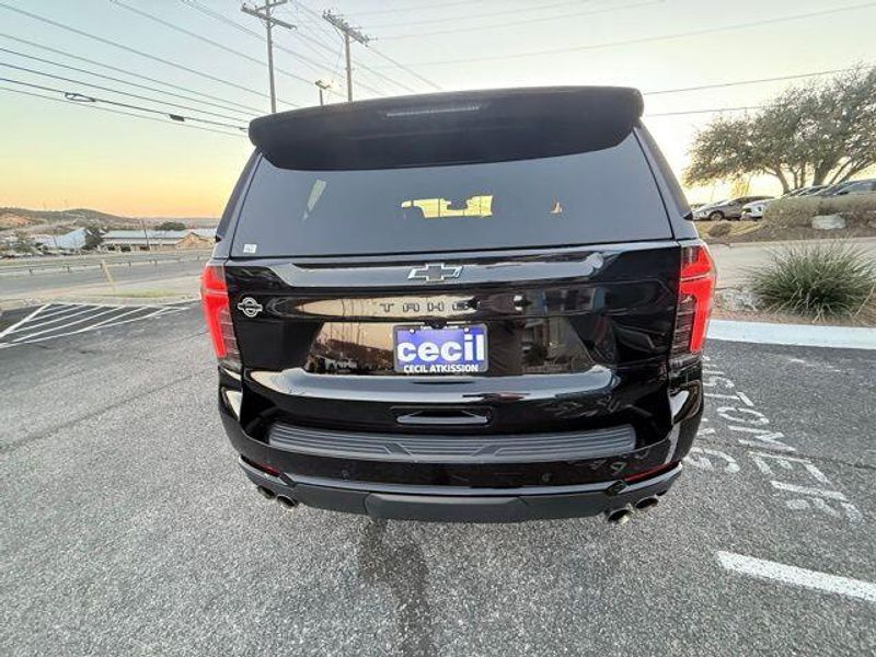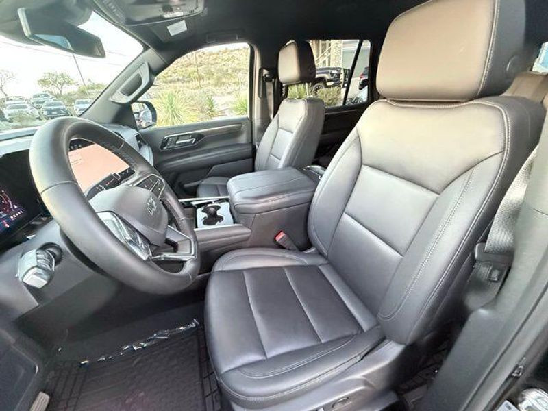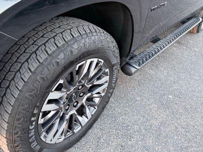 Black 2025 Chevrolet Tahoe Z71 4WD 10-Speed Automatic with Overdrive EcoTec3 5.3L V8 1 OWNER, Certified Preowned, Z71 4x4, 3rd Row Seating, Leather, 4WD, Jet Black Leather, 1st and 2nd Row Color-Keyed Carpeted Floor Mats, 2-Speed Active Electronic AutoTrac Transfer Case, 3-Spoke Wrapped Steering Wheel, 3rd Row Manual 60/40 Split-Folding Bench Seats, 8-Way Power Driver Seat Adjuster, Advanced Trailering Package, Air Ride Adaptive Suspension, Apple CarPlay/Android Auto, Auto-Dimming Inside Rear-View Mirror, Black Tubular Assist Steps, Blind Zone Steering Assist with Trailering, Bright Front and Rear Door Sill Plates, Color-Keyed Carpeting Floor Covering, Dual Exhaust System, Electronic Limited-Slip Differential, Floor Console, Floor Console with Storage Area, Front Bucket Seats, Front High-Approach Angle Fascia, Front LED Fog Lamps, Front Pedestrian and Bicyclist Braking, Frontal Driver and Outboard Passenger Airbags, Heated Driver and Front Passenger Seats, Heated front seats, Hill Descent Control, Hitch View with Pan/Zoom Image Adjustment, Integrated Trailer Brake Controller, Magnetic Ride Control Suspension, Max Trailering Package, Memory Settings For Driver, Navigation system: Google built-in compatibility (select service plan required, terms and limitations apply), Off-Road Capability Package, Power Liftgate, Power passenger seat, Preferred Equipment Group 2Z7, Rear Power Liftgate, Red Horizontal-Mounted Recovery Hooks, Remote Start, SiriusXM with 360L Trial Subscription, Smart Trailer Integration Indicator, Universal Home Remote, USB Ports, Wheels: 20'' x 9'' Bright Machined Aluminum, Wireless Phone Charging, Z71 Exterior Features, Z71 Off-Road Package.