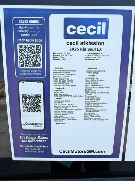 White 2025 Kia Soul LX FWD CVT 2.0L I4 DOHC